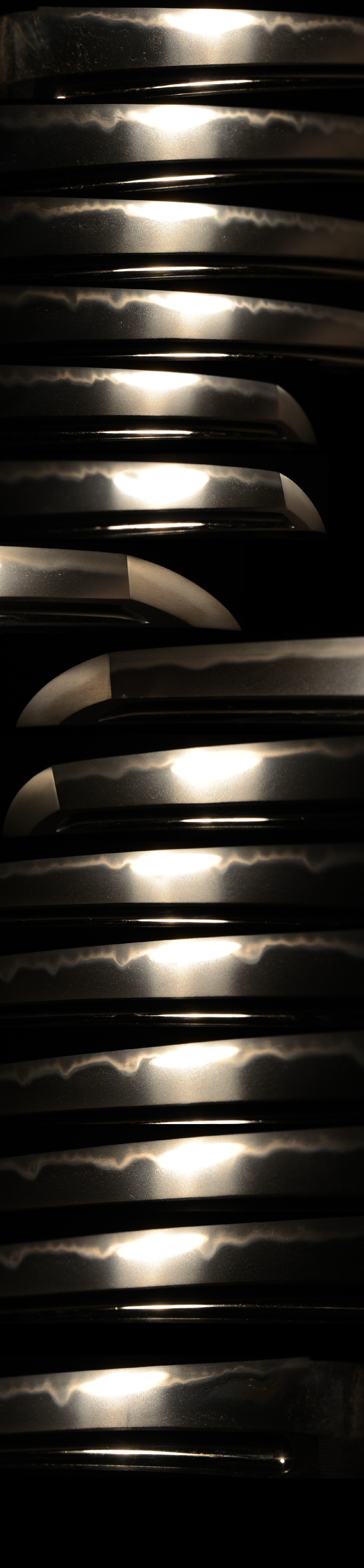 関で活躍していた父の兼道が文禄二年二月に実子四人を連れて京都に移住し、三品派の始祖となり、丹波守吉道は三男で、長兄は伊賀守金道、次兄を和泉守金道、弟は越中守正俊ら四人は三品派の代表工として大活躍しました。初代吉道は文禄四年に丹波守を受領し伏見で鍛錬していたため伏見丹波とも呼ばれており、帆掛丹波とも呼ばれる前の作で、帆掛丹波と伏見丹波は別人説もありましたが、現在では慶長期初期の京丹波初代とされています。「守」と「吉」の字が接近しているのも特徴とされています。(帆掛に丹の鏨を切ったのは慶長期の後期とされています本作は、父の兼道が志津九代を名乗っており、先祖で有る志津を写した一振りで、同時代の堀川系と並び、相州伝上位作を倣い、身幅広く、豪壮な、元幅と先幅の差が少ない慶長新刀姿をし、精錬された地鉄は力強く青く澄み板目肌良く詰み地沸良く付き淡い映りが立っています。沸出来の刃縁は明るく冴え匂い深く金筋など刃中の働き特に良く、抜群の出来で初代吉道の実力の高さが実感できる一振りです。正真で鑑定会にも鑑定刀として使用されています。研ぎの状態も良く研ぎの必要無く鑑賞は十分に可能で、無傷無欠点です。(匂い切れ・刃切れ・曲がり・鍛え割れ・シナエ・脹れ等の欠点は有りません)拵えも江戸期の物で良く、黒塗りの刻み鞘は疵少なく、縁頭は忠道の作で赤銅魚子地龍の図・目貫も赤銅で獅子の図・鍔は非常に良く金象嵌の副麟は掛けも無く素晴らしい出来です。非常に真面目で内外特別貴重でしたが、拵えは紛失したそうです。これほど真面目な刀はネットでは中々出品されない一振りです。安心して入札してください。オークション手数料の2.625%は落札者様に負担頂いていますので宜しくお願いします。