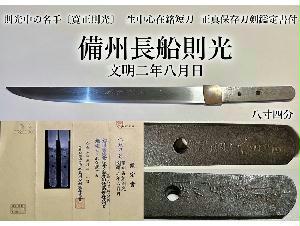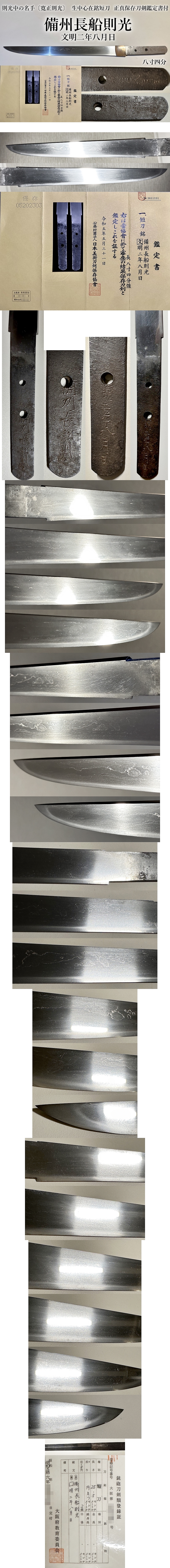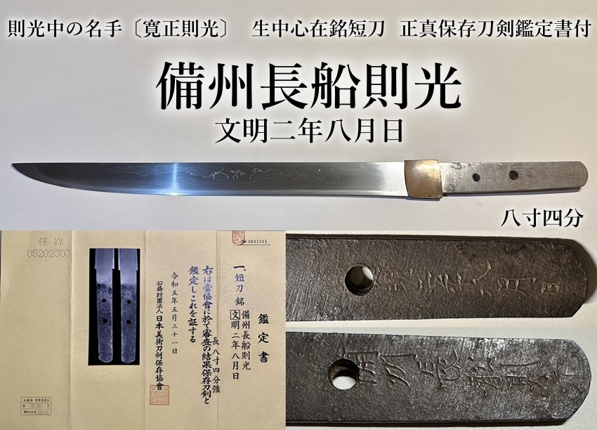 ⭐️則光中の名手〔寛正則光〕備州長船則光 文明二年八月日 八寸四分 生中心在銘短刀⭐️正真保存刀剣鑑定書付⭐️