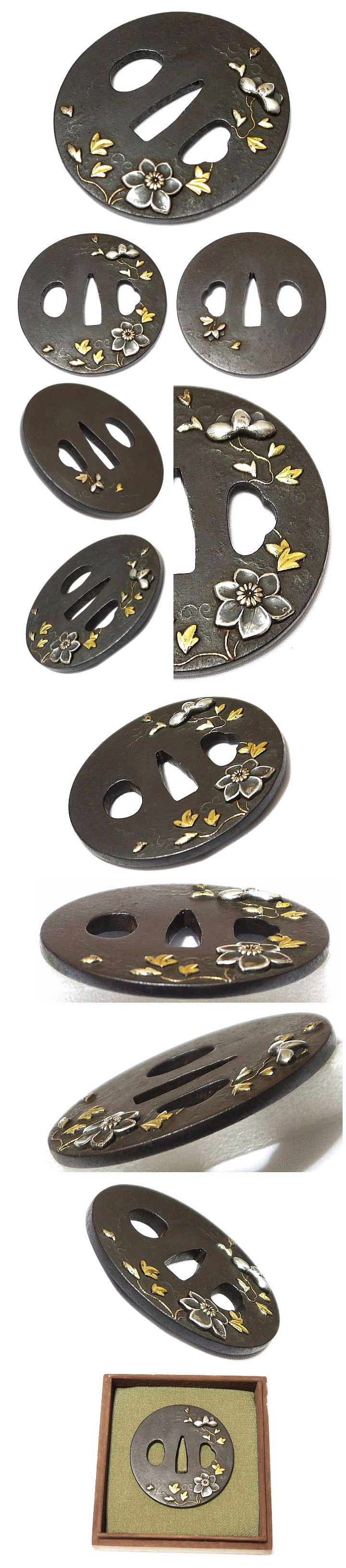 【鍔】-桔梗花図- 緻密で立体的図柄です!71mm (桐箱付)