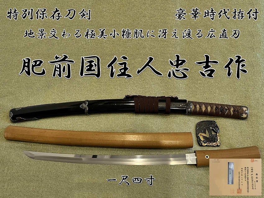 ⭐️特別保存刀剣⭐️肥前国住人忠吉作 一尺四寸 地景交わる極美小糠肌に冴え渡る広直刃 豪華時代拵付⭐️