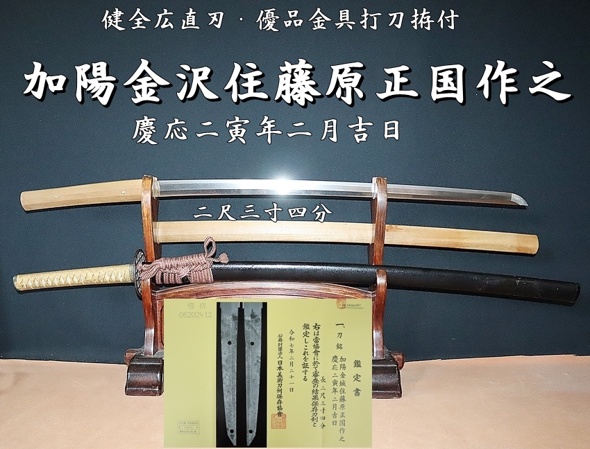 ⭐️加陽金沢住藤原正国作之 慶応ニ寅年二月吉日 二尺三寸四分 健全広直刃・優品金具打刀拵付⭐️