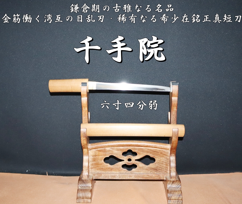 ⭐️鎌倉期の古雅なる名品⭐️千手院 六寸四分弱 金筋働く湾互の目乱刃・稀有なる希少在銘正真短刀⭐️