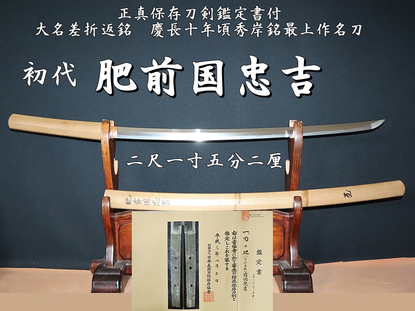 ⭐️正真保存刀剣鑑定書付 初代 肥前国忠吉 二尺一寸五分二厘 大名差折返銘 慶長十年頃秀岸銘最上作名刀⭐️