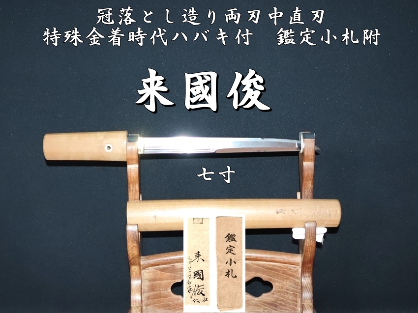 ⭐️来國俊 七寸 冠落とし造り両刃中直刃 特殊金着時代ハバキ付 鑑定小札附⭐️