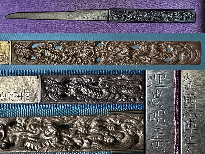 《山城国西陣住人埋忠明寿 龍文透かし彫刻共小柄小刀 全長21.6cm 無類の正真大珍品》