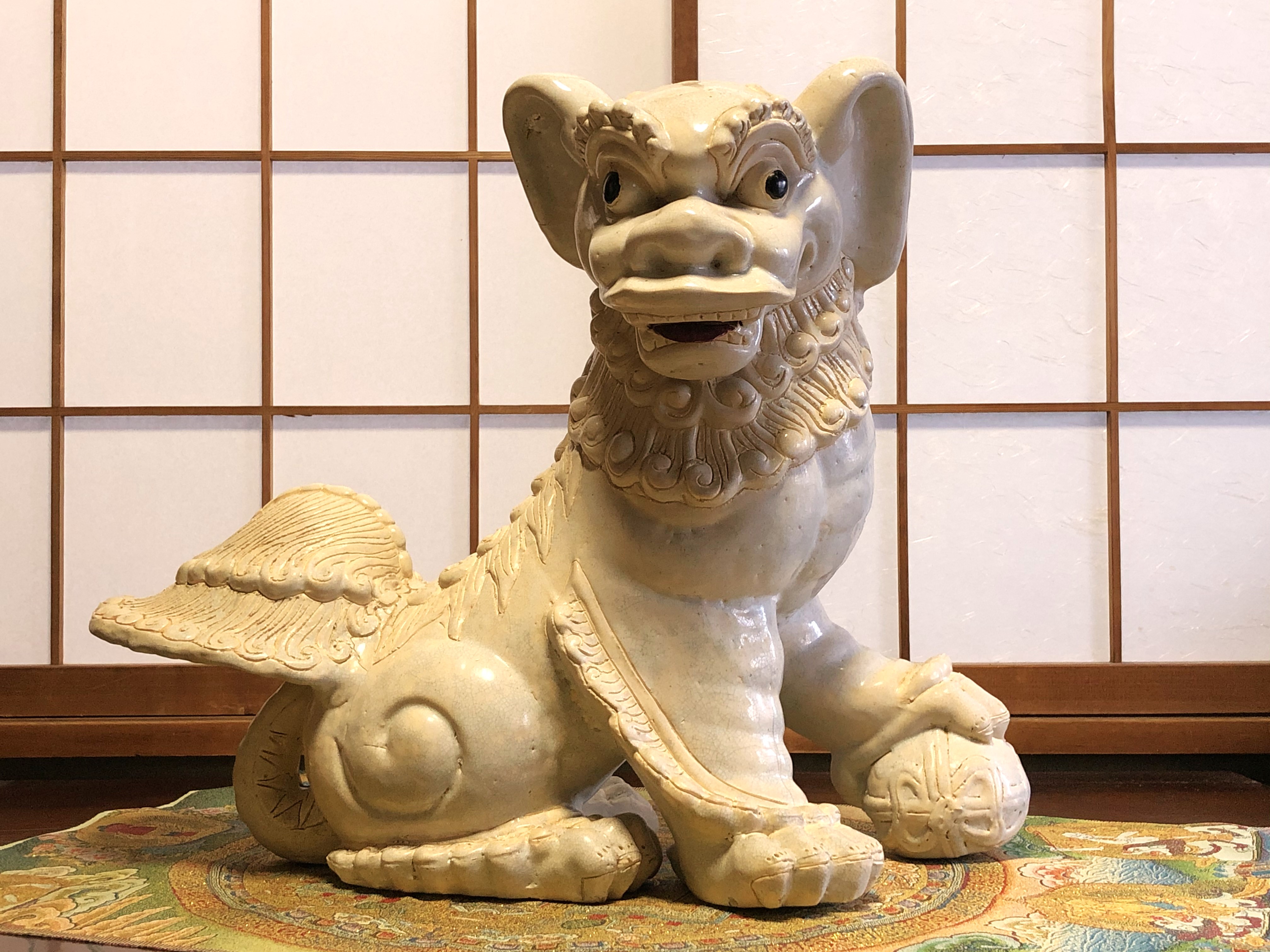 【骨董玉獅子】 特大白獅子 中国古玩 状態良
