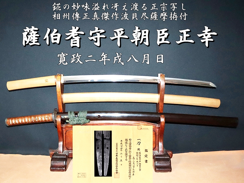 ⭐️薩伯耆守平朝臣正幸 寛政二年戌八月日 錵の妙味溢れ冴え渡る正宗写し相州傳正真傑作波貝尽薩摩拵付⭐️