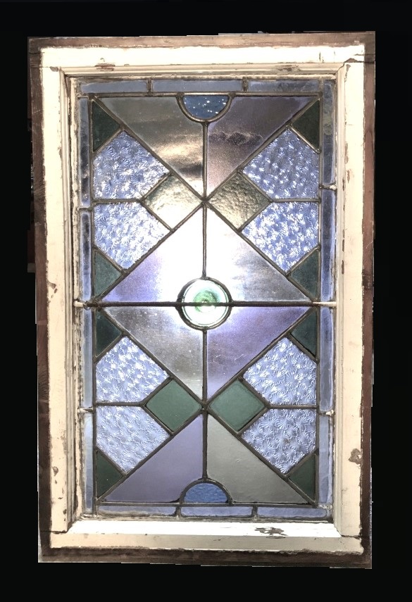 【 ステンドグラス窓 71.7cm 】 菊花尽し彫りアールデコ