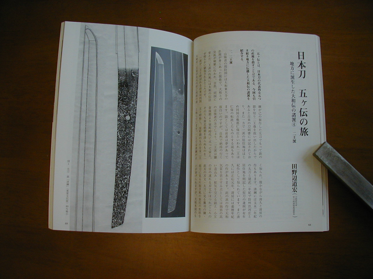 | この号の刀剣に関する記事は善財一【刀装具研究家】の装剣小道具の世界として、禅に生きた人々と言う事で大月光興の鐔で(江口君西行図鐔)を題材に時代拝見などの解説をされています。 日本刀 五ヶ伝の旅 地方に派生した大和諸派④二王派 田野辺道宏【刀剣研究家・前刀剣博物館副館長】の解説で五ヶ伝の一つでも有る大和伝の影響を受けた二王派の刀工で清綱の重要文化財の押形や重要美術品の押形を数振り掲載して大和との関わりなどを解説して頂いてます。 日本刀 五ヶ伝の旅 其の壱 大和五派 前編(千手院・当麻・手掻 )と題して 大和物の作風とその展開 千手院では千手院や千手院康重・千手院長吉などを題材に解説されています。当麻では国行・延吉などを題材に解説されています。手 では包永・包清などを題材に解説されています。 | |||
