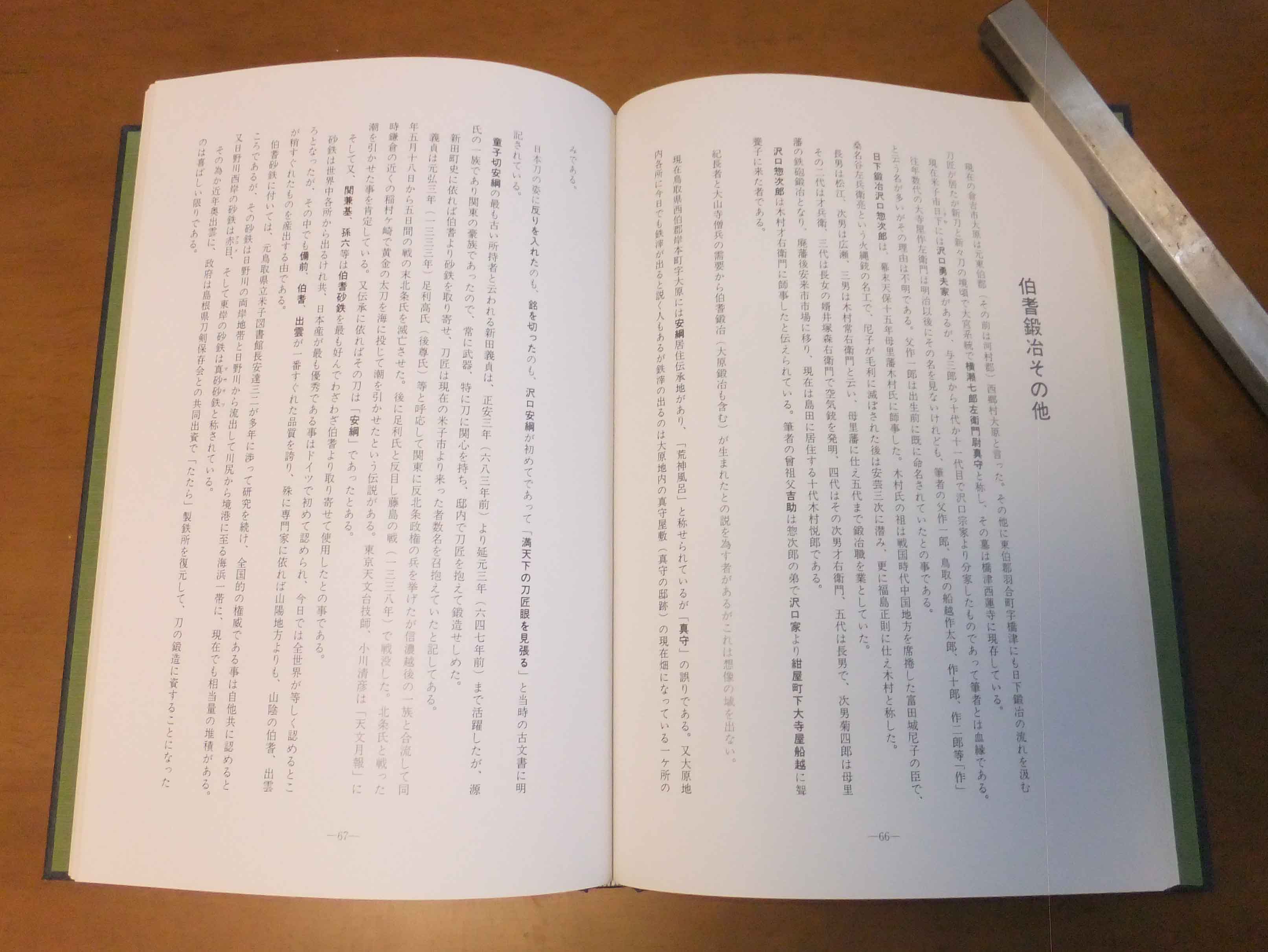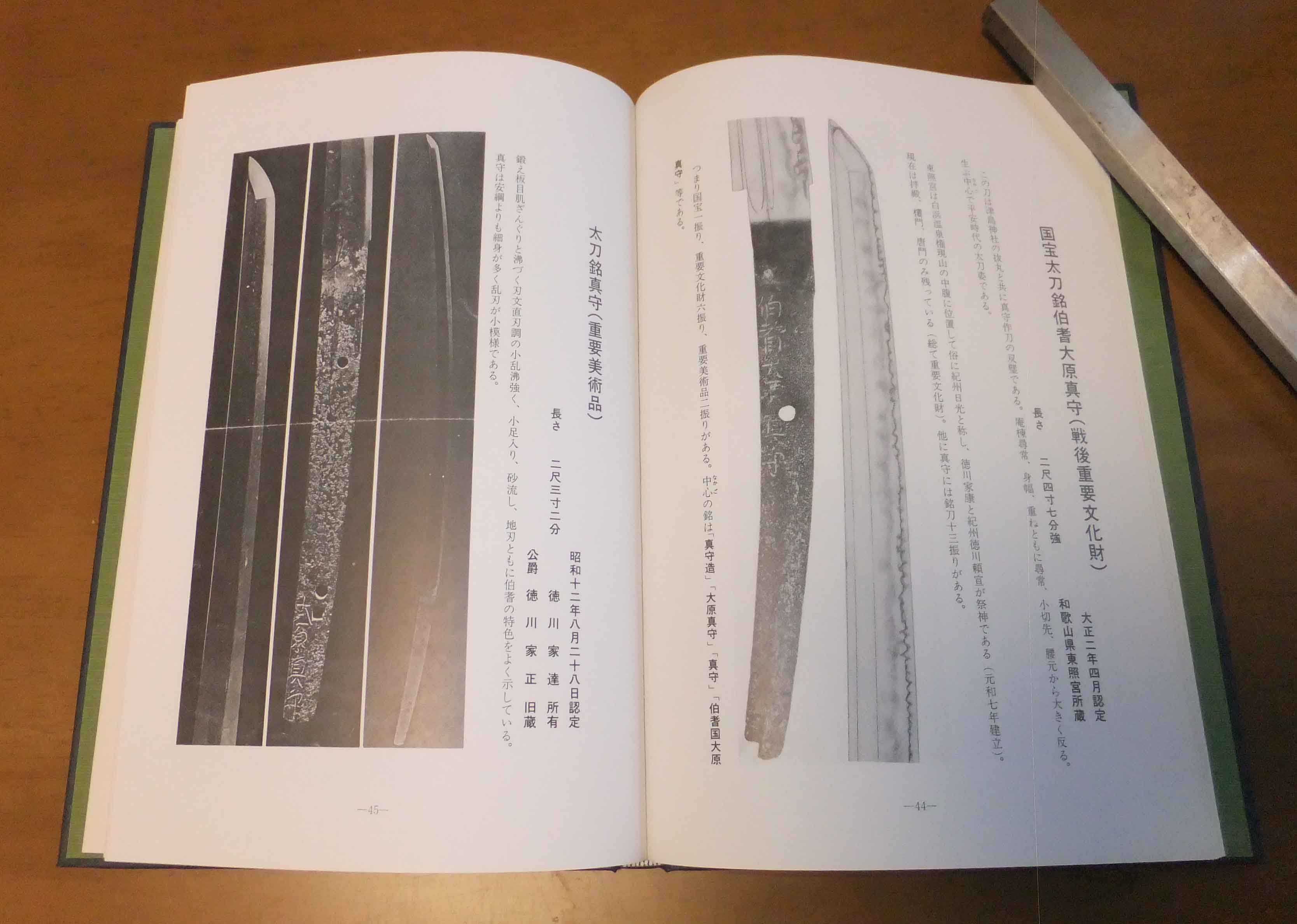 この本は昭和58年に大阪市立博物館で開催された特別展で日本刀剣保存協会大阪支部が共催で開催された名刀揃いの展示会の書籍で簡単ですが内容の方を記載させて頂きます。第1部~5部に構成されて開催された展示会で第1部に古刀期の名刀として厳選された国宝や重要文化財を中心に16振り掲載されていますので本で見る機会の多い古名刀ばかりが掲載されています。第2部に各都市の新刀として重美の国広を始め9振りの重要文化財や重美を掲載しています。第3部として初期の大阪新刀として重要刀剣の国助・国貞を中心に5振り程掲載されています。第4部として大阪新刀の誕生として重文や重美の助広を中心にさすがの大阪での開催ですので充実の23振りを掲載しています。第5部として現代に生きる大阪新刀の伝統として月山鍛冶を中心に3振り程掲載されています。
