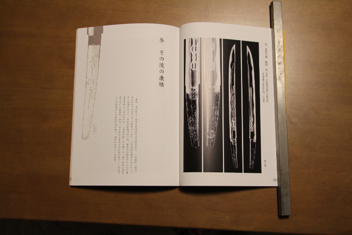 | この図譜は平成21年に福井市郷土歴史博物館に於いて開催された際の図録です。南北朝時代に来系の千代鶴が畿内から北陸で栄えて以降に新刀期に国広の弟子の国清や康継が越前で鍛刀をした場所で康継と国清の重要美術品を筆頭に康継と国清の名品が掲載されていますし徳川美術館より名物の若江正宗を始め鯰尾藤四郎・海老名宗近等の康継に影響を与えたのでは無いかと言われている名品も掲載されています。少しですが記内鐔もお膝元ですので掲載されています。 | |||