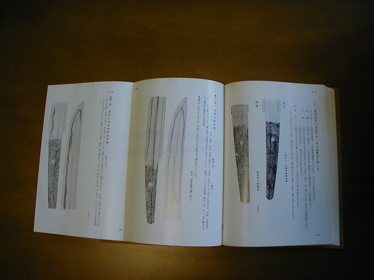この本は刀剣しのぎさんの大沢都志夫さんの書籍で簡単ですが内容の方を記載させて頂きます。ほとんどの本は国宝や重要文化財の押し方が多く手に取って見る機会も無い刀剣の押し方が多く記載されていますがこの本は著者が主催されている刀剣店や一般の愛刀家が手に入れる可能性の有る刀剣が多くその中でも参考になるであろうと思われる刀剣が300点近く記載されています。また参考資料として偽名の刀剣も80点近く参考資料として記載されていますのでその点でも参考になると思います。勿論押し方の方も街道の順番に記載されていていますので探しやすく読みやすい構成となっています。多彩な押し方と寸法・やすり目や出来等判断が出来る範囲の説明がされています。勿論押し方だけでは無く五ヵ伝の説明や有名刀工の特徴も記載されています。身近な押し方以外にも参考書としての本にもなります。