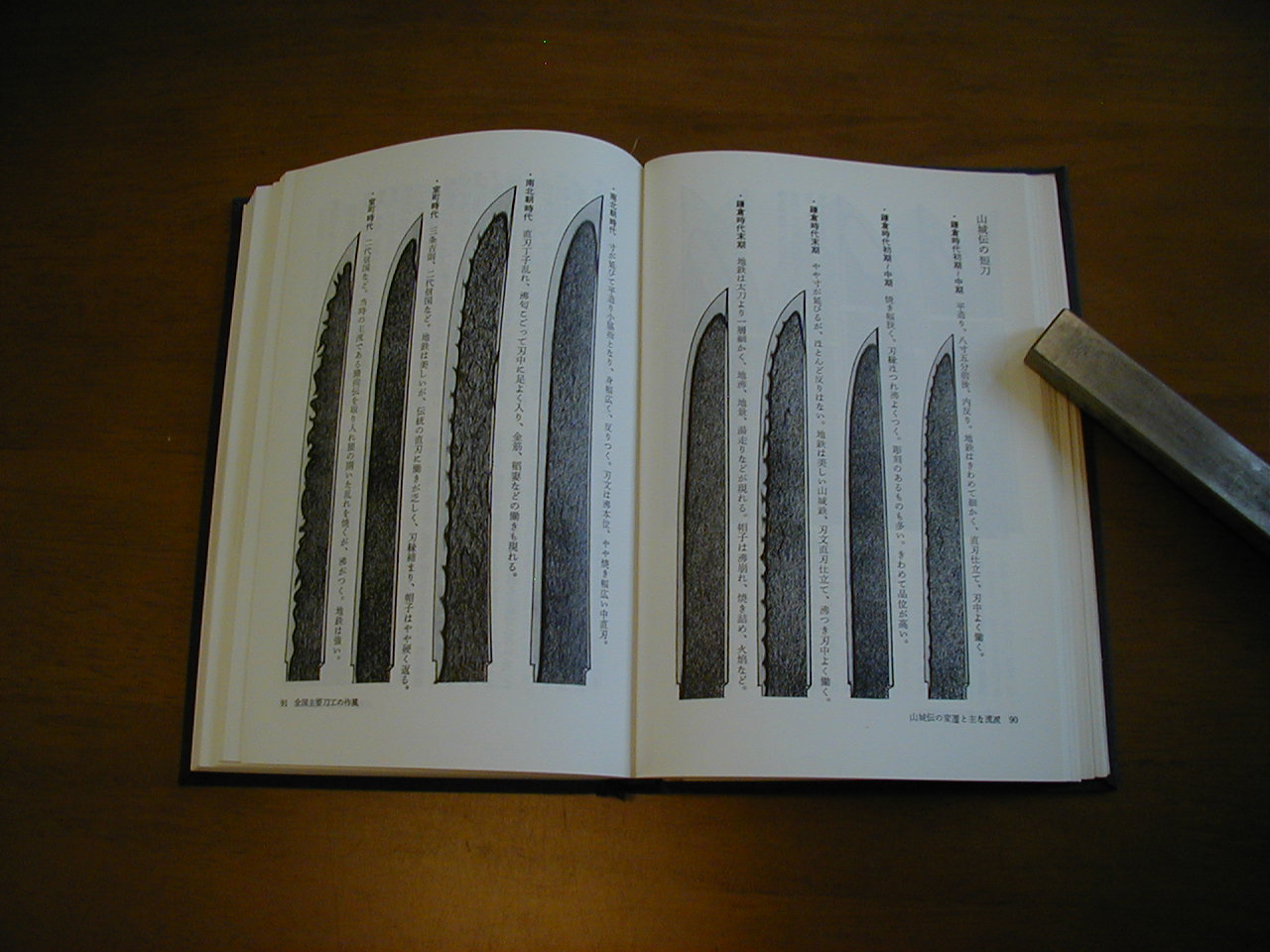 | この本は永山光幹さんの本です。簡単な内容として第一章 刀剣の歴史として各時代の姿や作風などの特徴を読みやすく記載されています。第二章 全国主要刀工の作風として各刀工の作風が記載されていますが、他とは少し違うのは作風の解説でも古青江の刀工でも山城伝風の作刀の話や時代が下がって流通が進むとオリジナルでは無く作風の変遷の話しなど余り他では書いて無い内容も多いです。新刀の内容も充実をしています。 | |||