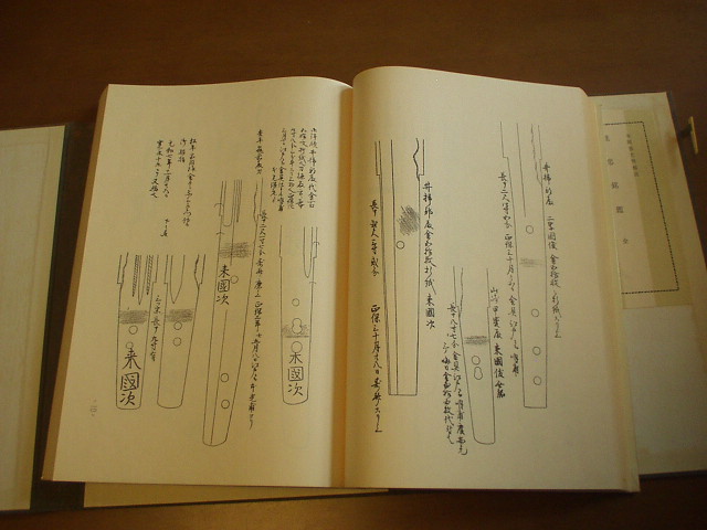 | 本阿弥光博解説の書籍で簡単ですが内容の方を記載させて頂きます。最初に何枚かの鮮明な鍔や埋忠明寿の太刀や短刀等の写真や解説が有りその後は埋忠家の歴史や金工の話に続き中心や彫りを中心に銘や鑢目や目釘穴を記載した中心の写を記載しています。銘を見ているだけでも凄い銘が沢山記載していますので読んでいるだけでも本当に楽しいです。 | |||