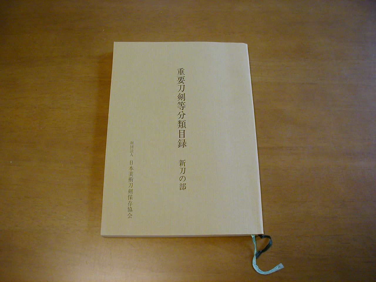 | この本は(財)日本美術刀剣保存協会が同財団で認定をした重要刀剣や特別重要刀剣を流派ごとに纏めて発行をした本です。新刀編では 第1回から30回の重要刀剣と第1回から8回の特別重要刀が記載されています。 | |||