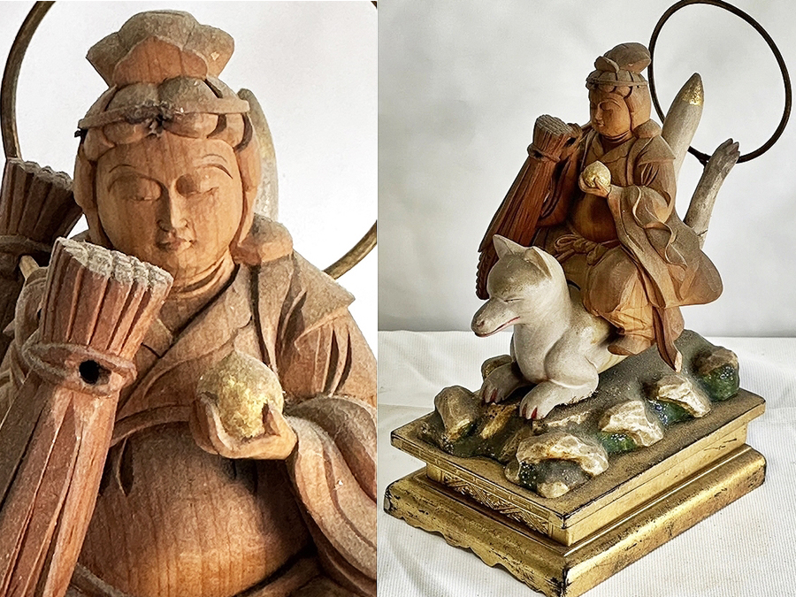 御覧のように飾る処を選ばない繊細な彫りの御顔と意匠の見事な愛すべき御品となっています。