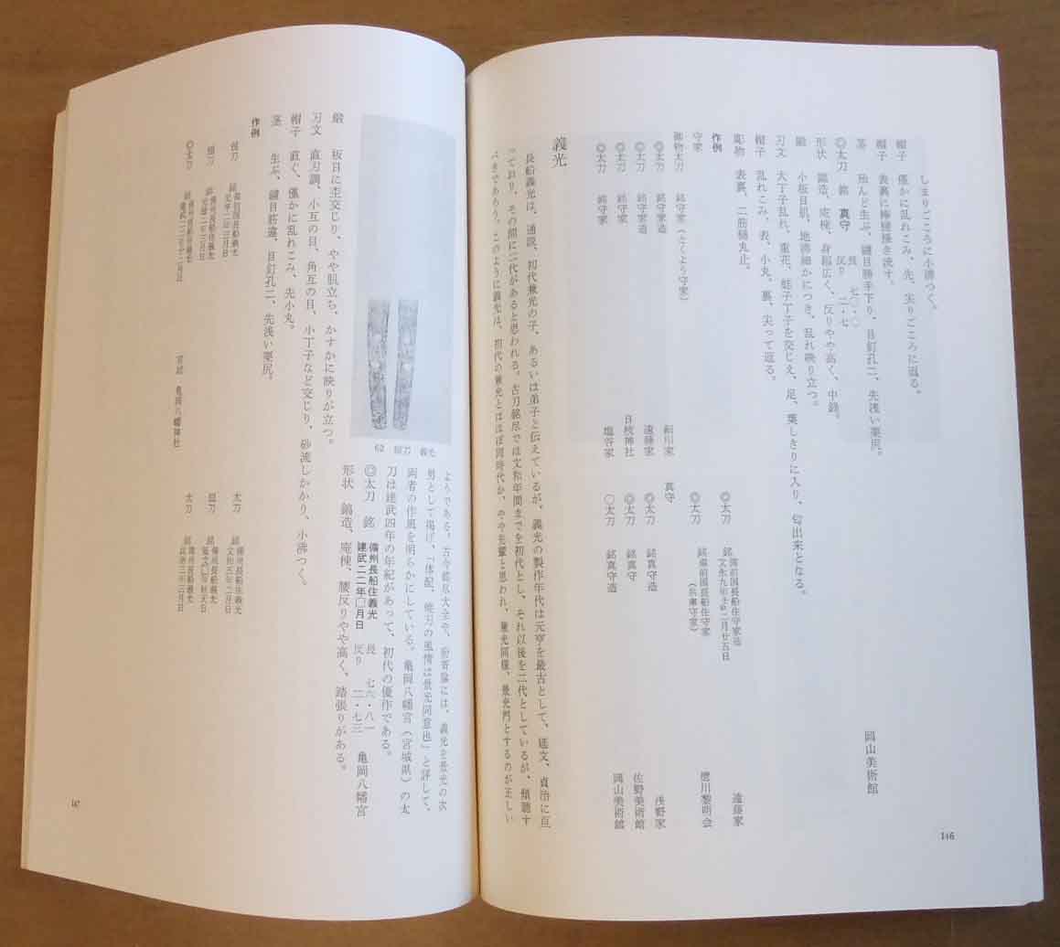 | この研究本は昭和45年に東京国立博物館紀要 第六号として発表された研究本です。鎌倉期~南北朝にかけての長船と言う事で長船の祖と言われています近忠には現存した作品が無いので光忠からの作品紹介と作風の解説です。正系の長光を始め景光や国宗・守家など11刀工で南北朝では兼光・基光を始め元重・長義・こぞり物を解説しています。室町時代の長船物は掲載されていません。 | |||