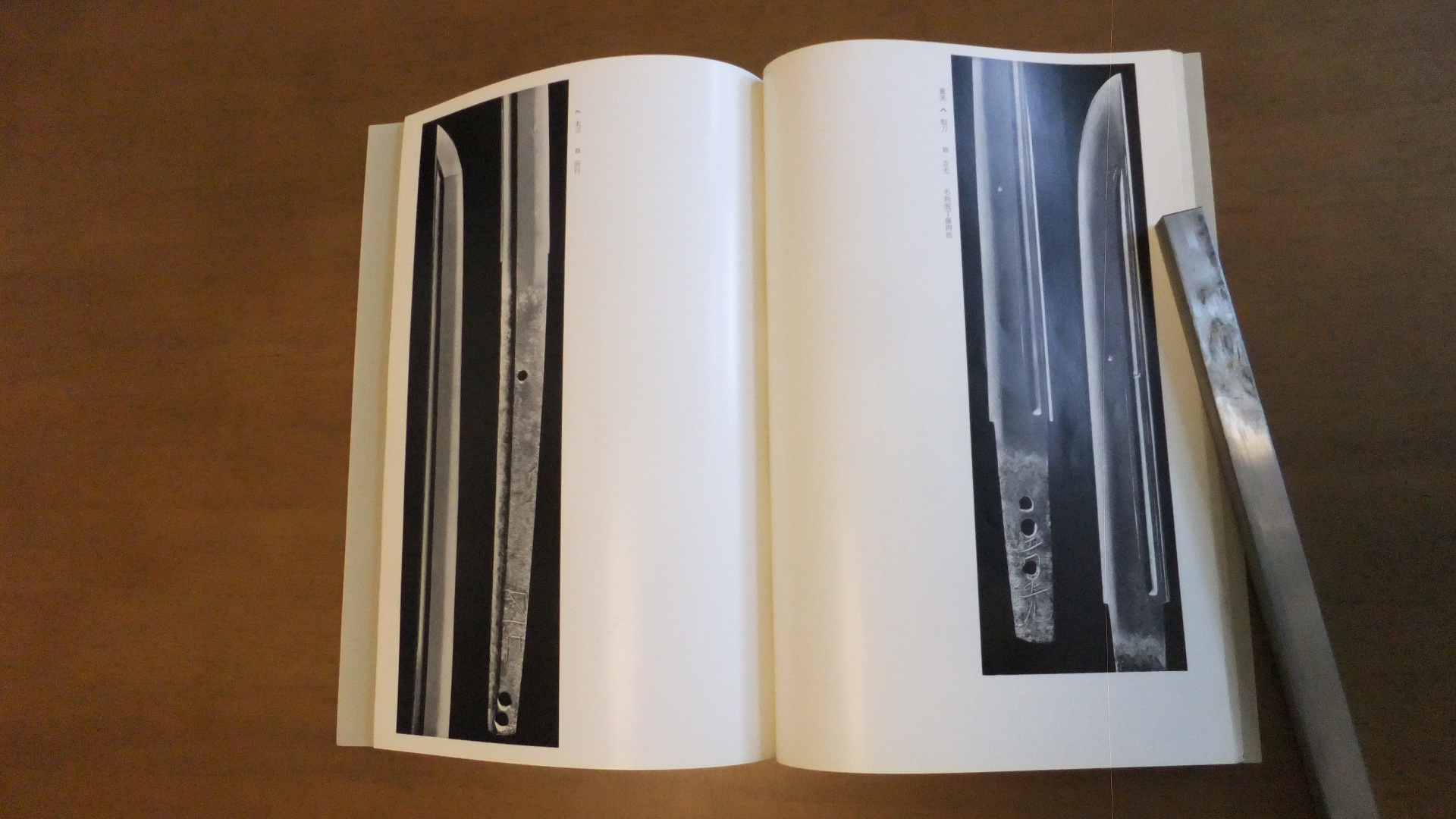 | この図譜は以前徳川美術館で開催された記念の図譜です。徳川美術館(徳川黎明会)所蔵の名刀の数々を掲載した図譜で同館の所蔵の質の高さは国内でも屈指の質を誇ると思います。全部では無いですが主な物を記載します。まず国宝で名物後藤籐四朗・来孫太郎作・名物包丁正宗・正恒・光忠・名物遠江長光・国宗等でその他の名物と呼ばれる、重要文化財や重要美術品の数々が掲載されています。 | |||