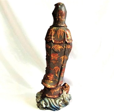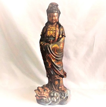 【龍乗観音(騎龍観音)】 49.8cm 明治時代 金彩色絵真鍮像 H0705F