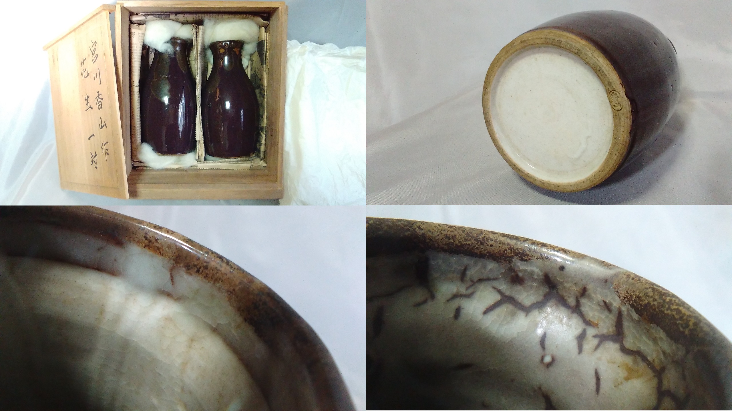宮川香山 真葛焼 双花瓶 花生 窯変釉 I0115C