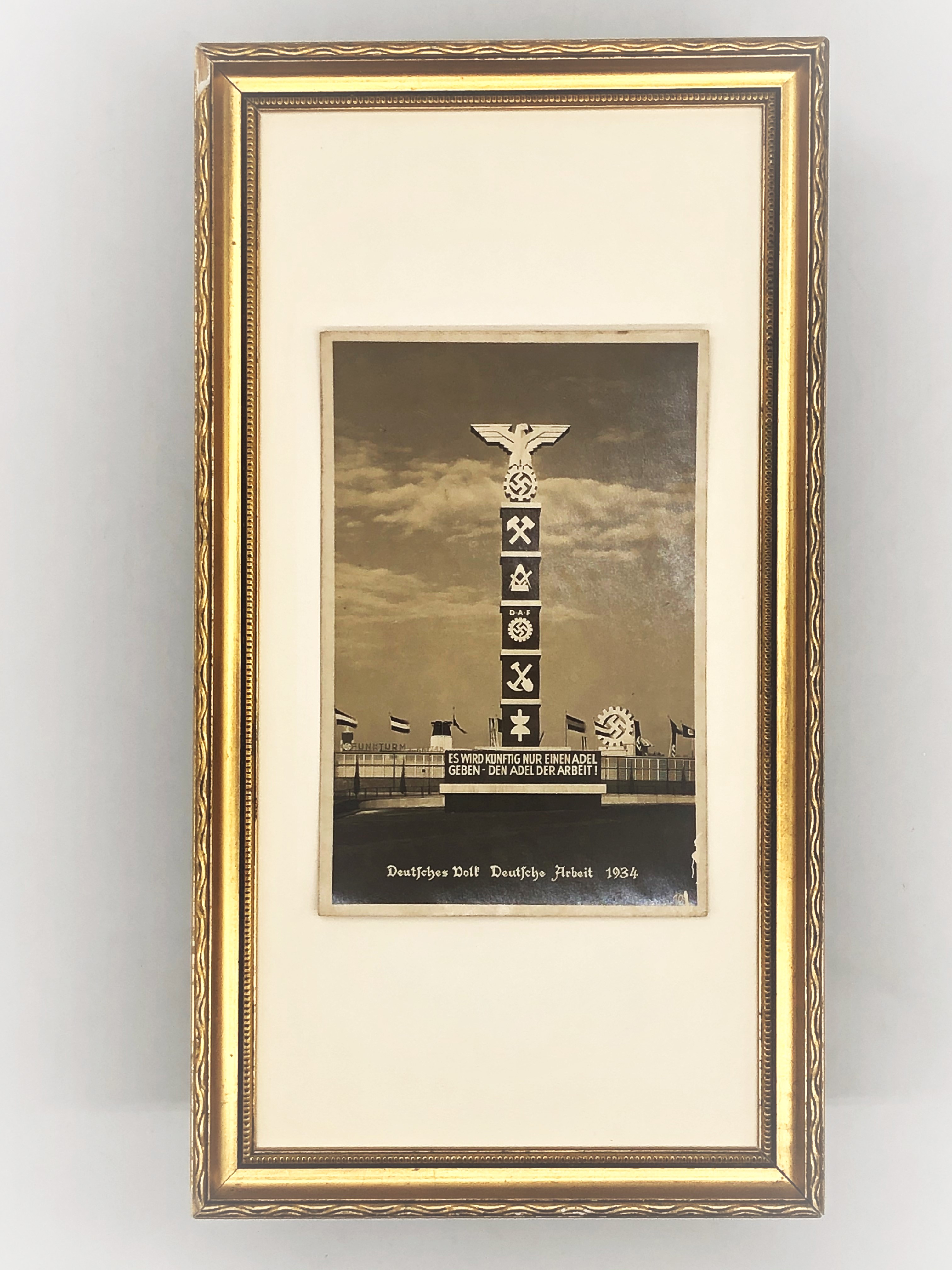 【1934年ベルリン グリーティングカード】 額入り ヒトラー語録/ナチス/要塞/ハーケンクロイツ/双頭鷲