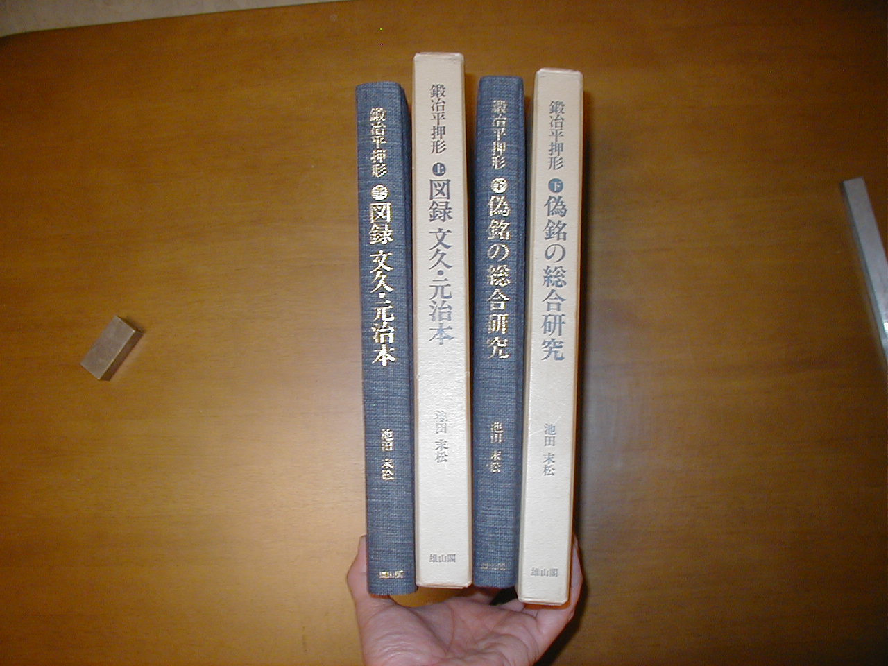 | この本は池田末松さんの本です。帯の解説です。今回初めて世に問う。稀代の偽銘作りの名人、鍛治平押形の未発表珍稀本『 図録文久・元治 』を一挙公開 現代、真贋鑑定の術にかけては鬼才とうたわれる著者のしょうがいにわたる研究成果を、あますところなく開陳した歴史上に残る名作 | |||