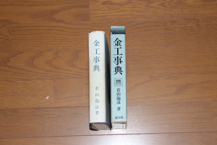 この本は若山泡沫さんの本で『金工銘鑑』に、あらたに収録した厖大な資料から厳選し、3,000余枚の銘写真を駆使した愛好家必携の本格的辞典です。軽いページの折れが有ります。