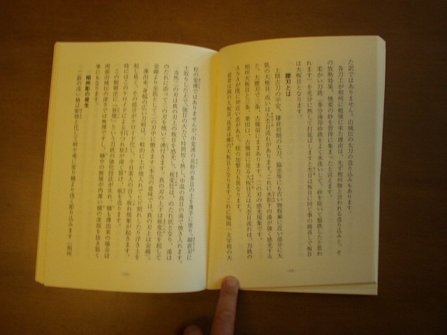 | まず第1章として焼入れと刀鉄の運動として棟焼きの話や反り・映りの話を中心に記載されています。第2章として刀工の知恵と技巧として刀の技術的なお話や内反りと無反りの話・映りと樋・映り研ぎの方法等が簡単な内容です。 | |||