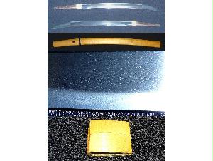 最高級金着二重ハバキ、最高級角鯉口入白鞘付、最上研磨。