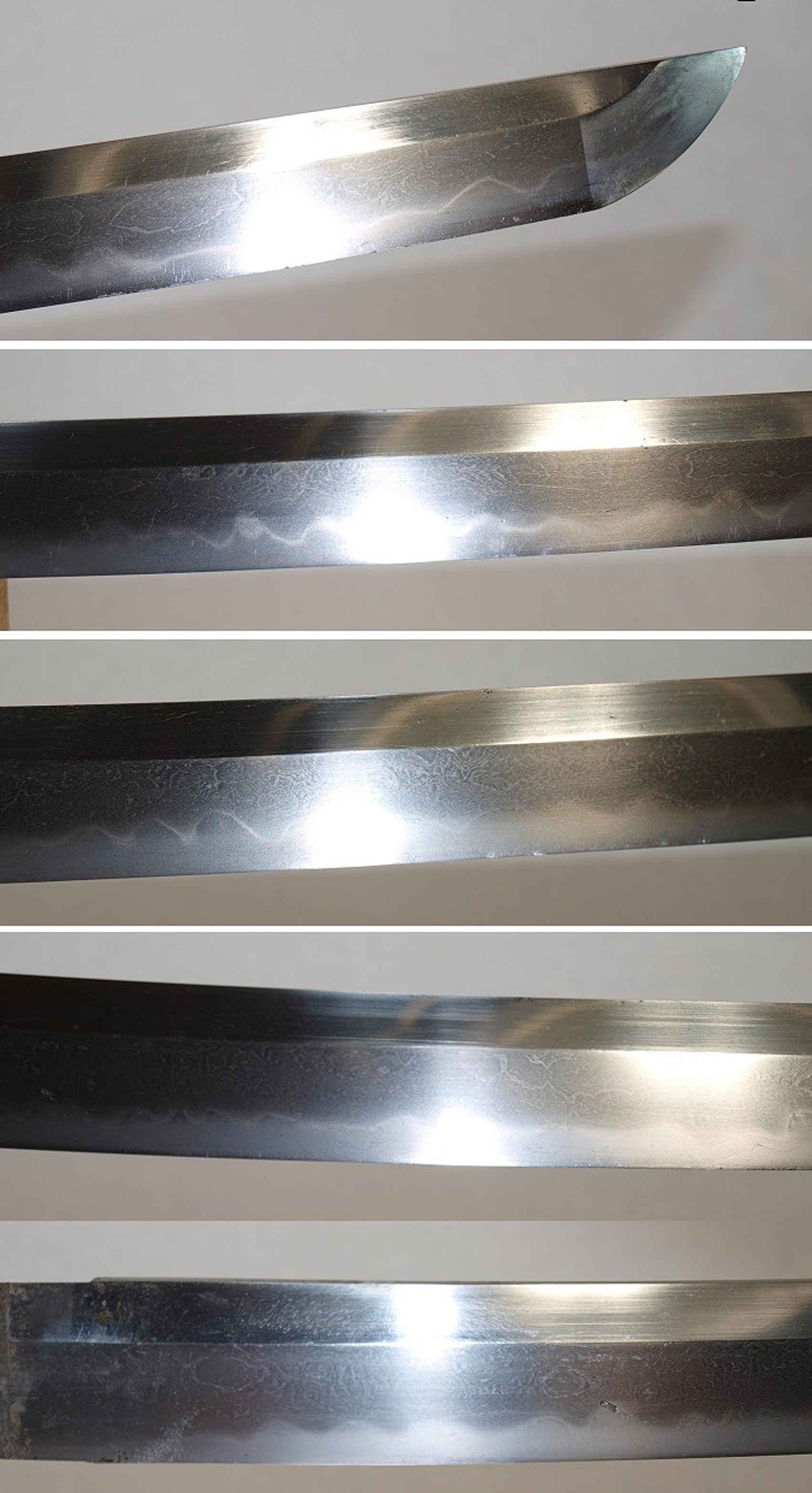 木目主体の鍛えが見事に地景に現れ、古い差し込み研ぎの儘ですので細かいヒケは