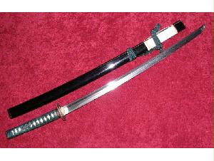刀のサイズとしまして元幅が3.2糎、元重が0.7糎、先幅が2.2糎、先重が0.4糎、刀身重量730g、鞘払いで1kg(表記約)です。