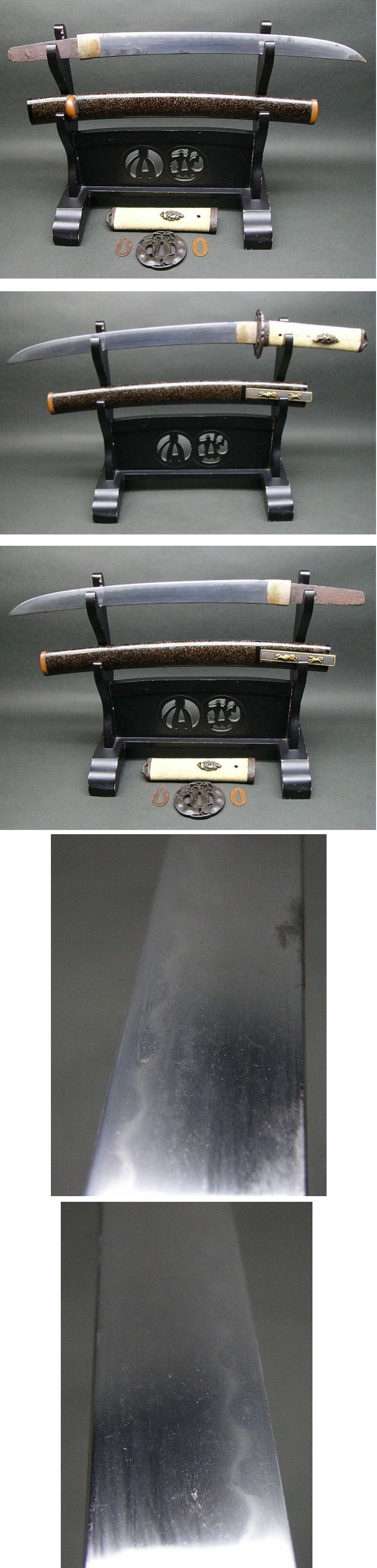 [備考] 平造り寸延び短刀 棕梠塗鞘拵入 祐定 34.8cm。