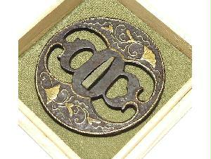 【大径鍔】 -唐草象嵌図- *平安城* 豪華です!84mm 桐箱付