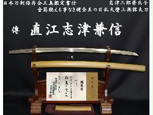 ☆日本刀剣保存会正真鑑定書付☆志津三郎兼氏子☆傳 直江志津兼信☆二尺 金筋絶える事なき健全互の目乱大磨上無銘太刀☆