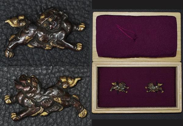 赤銅に鍍金掛けが施された獅子文目貫で、作域は古後藤風である