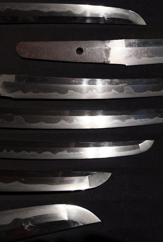 相州伝互ノ目乱が豊富な働きを見せ焼かれており、刀身表面には油分の変色等が