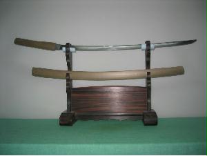 ※※太刀※※<左>磨り上げ 銀無垢ハバキ白鞘新調しましたが粗砥で刃切れが出ました。試し斬りに如何でしょうか。