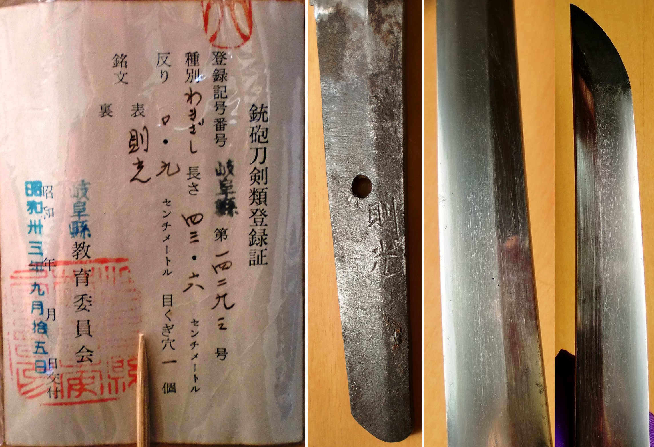 ◆ 脇差 銘文「則光」 刃長43.6㎝/元重0.55㎝ 白鞘入り+拵え付き ◆