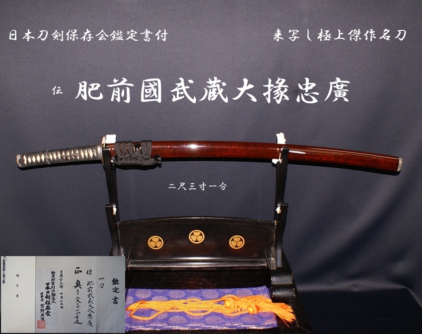 ☆日本刀剣保存会鑑定書付☆伝 肥前國武蔵大掾忠廣 二尺三寸一分☆来写し極上傑作名刀☆