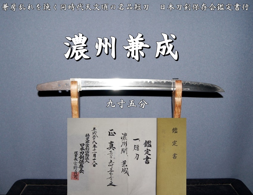 《濃州兼成 九寸五分 兼房乱れを焼く同時代天文頃の名品短刀 日本刀剣保存会鑑定書付》