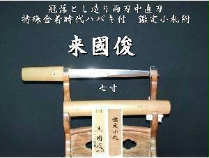 ⭐️来國俊 七寸 冠落とし造り両刃中直刃 特殊金着時代ハバキ付 鑑定小札附⭐️