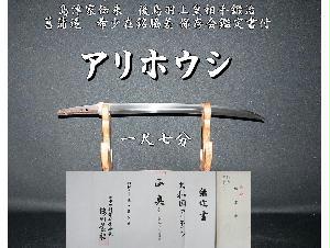 ⭐島津家伝来 後鳥羽上皇相手鍛治「アリホウシ」 一尺七分 菖蒲造 希少在銘脇差⭐保存会鑑定書付⭐